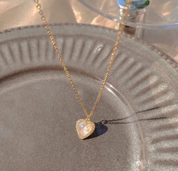 Trendy Hartvormige Hanger Ketting Opaal Ketting Glanzende Vrouwen Temperament Sieraden Choker Ketting Bruiloft Sieraden Geschenken